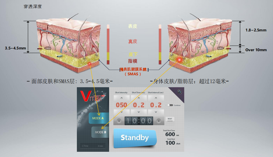 在我们皮肤的皮下脂肪层和肌肉层之间,有层像“网兜”一样包裹着各种脂肪垫和肌腱的——SMAS筋膜层。 年轻的时候,SMAS筋膜层是充满弹性的,帮助我们的肌肤维持弹性和充盈,可随着年龄的增长,尤其是过了25岁这个临界点后,SMAS筋膜层弹性下降,提拉能力不足,这是导致我们皮肤出现松弛、下垂等衰老迹象的直接原因! 所以,要提升肌肤的年轻感,SMAS层的管理非常重要。 不过,由于SMAS层位居皮下深处4.5mm处,传统的美容仪器作用深度难以到达,因此也被称为“美容禁区”。