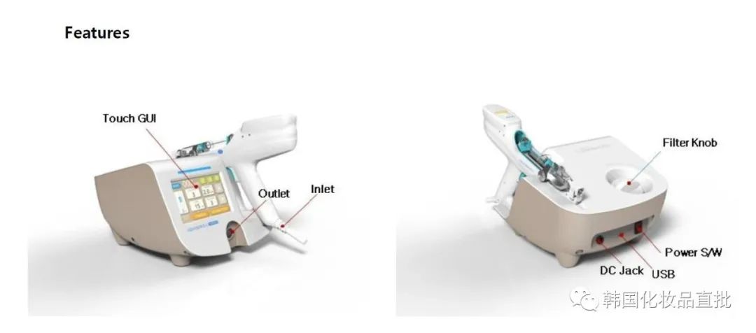 AQUA SKIN II AUOASKIN II 通过注射透明质酸或其他溶液在真皮中与 5 针多针增强活性胶原蛋白和弹性蛋白制度。名义上,皮肤失去 TIS 自己的水分和弹性衰老,然后使皱纹。A0UASKIN2 直接将各种溶液灌入真皮,解决水分的损失,改善皮肤问题和老化的根本原因,然后改善弹性、增亮、保湿和皱纹的改善。特点 -吸入和注射同时 -精确控制深度 5 注射量 -无渗漏溶液 -用于各种溶液 应用 -弹性 -亮化 -保湿 -皱纹改善