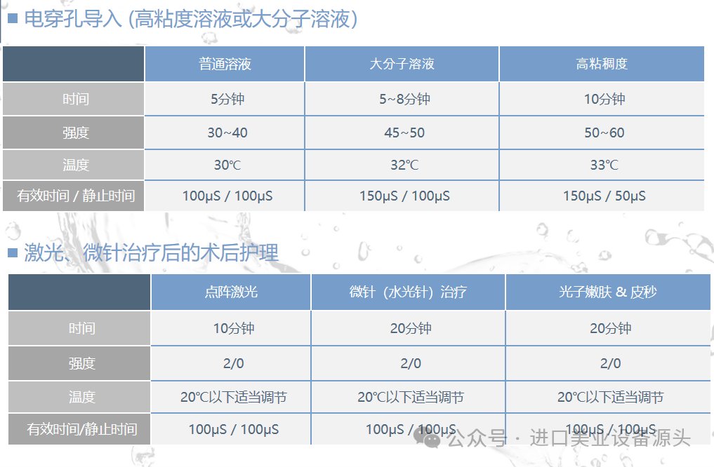 7.根据溶液的粘稠度、分子大小、皮肤敏感度可调节脉冲有效时间/静止时间