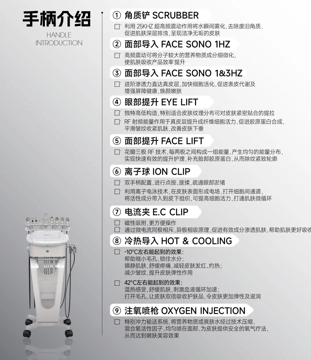 提升手柄采用RF,独特的细胞温热技术,对皮肤热效应效率更高,紧肤K老效果更理想