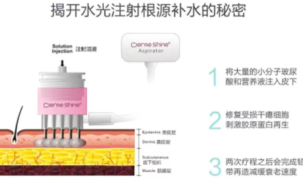 水光项目也解决了各种美容保养产品很难被皮肤吸收的弱点 ,可以使皮肤容光焕发 ,保湿光滑 ,让皮肤在日常保养的同时 ,定时
