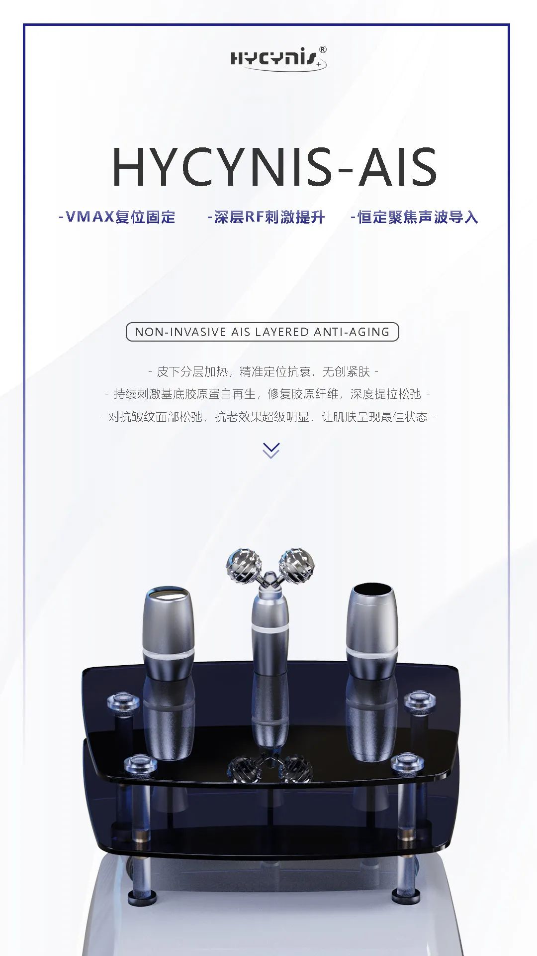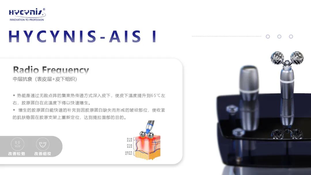HYCYNIS - AISⅠ为HYCYNIS仪器,属于入门级别抗衰仪器,无专属台车,有高清触控屏幕;