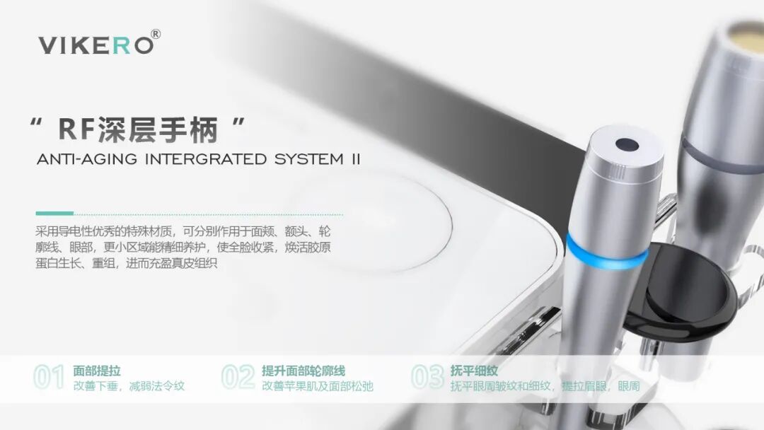 VIKERO AIS PRO则是HYCYNIS旗下高端品牌VIKERO仪器,属于高端类型抗衰仪器,配高端亚克力台车,为智能触控面板。